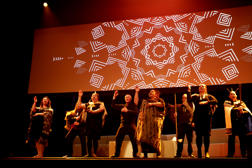 Our graphic designer and illustrator Kimi Moana Whiting and animator Moretekorohunga Lloyd put their creative heads together to create a beautiful animated backdrop for the opening karakia. Inspired by Māori pattern work and symbols, the video told the story of New Zealand coming together harmoniously.
