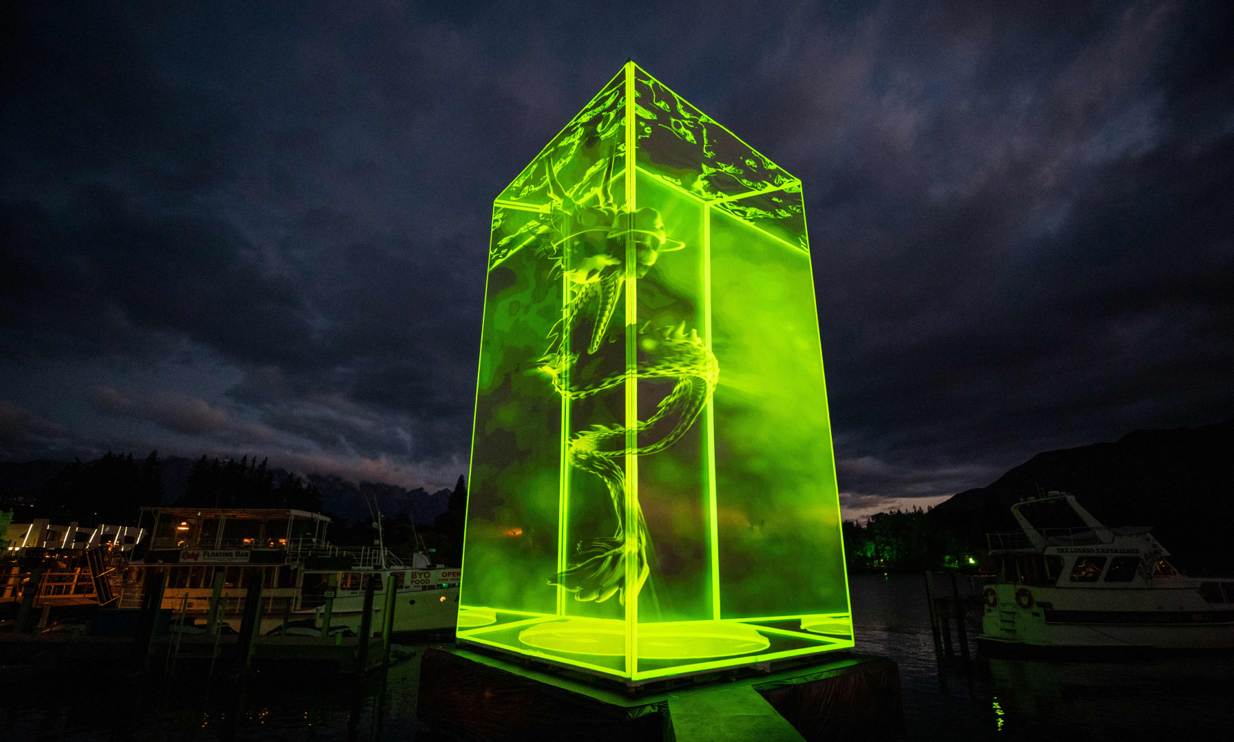 For one evening, a mysterious and otherworldly shape loomed large over the still waters of Lake Wakatipu. As the sun set, the new console was revealed in an illuminating display of phosphorescent lights and projections. Queenstown was transformed into ‘Greenstown’, as the iconic Xbox colour covered the town in a hazy hue of green.